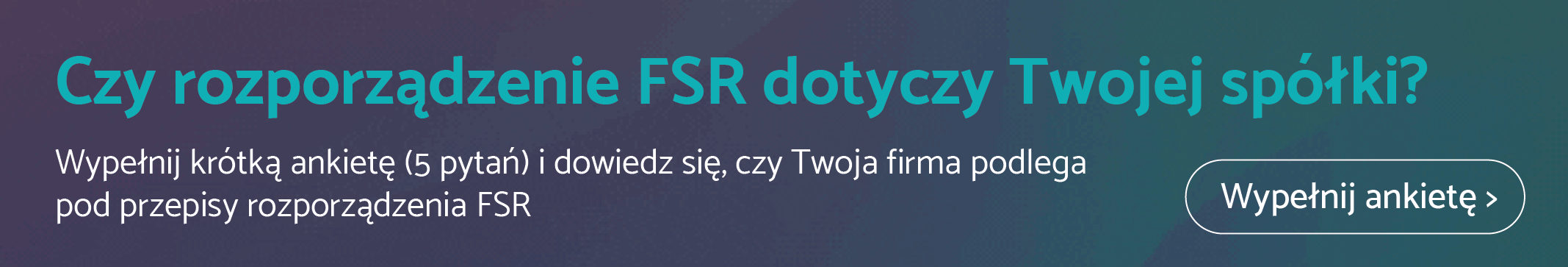 Zastanawiają się Państwo, czy rozporządzenie FSR dotyczy Waszego biznesu? Zachęcamy do odwiedzenia naszej nowej strony, gdzie znajduje się ankieta, która pozwoli to wstępnie zweryfikować. W razie jakichkolwiek pytań w zakresie rozporządzenia FSR zapraszamy do kontaktu.