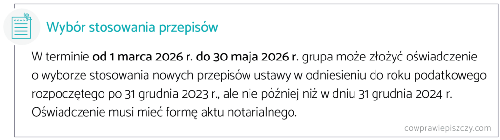 Dodatkowo, polskie przepisy przejściowe przewidują fakultatywną możliwość wstecznego zastosowania krajowej ustawy od 1 stycznia 2024 r.