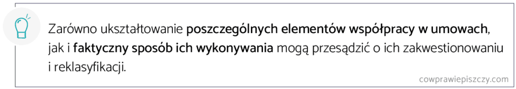 Co istotne, wciąż brakuje precyzyjnych kryteriów, które warunkowałyby dokonanie reklasyfikacji (a „test przedsiębiorcy” funkcjonuje na razie tylko w medialnych wypowiedziach).
