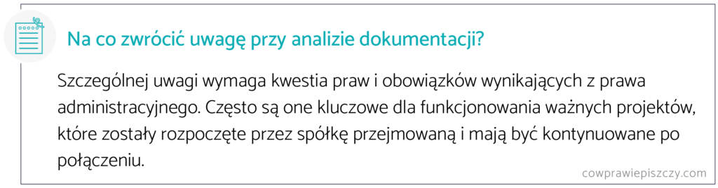 Natomiast, w każdym przypadku konieczne jest przeanalizowanie dokumentów regulujących indywidualne prawa i obowiązki spółki przejmowanej, które mają zostać przeniesione na spółkę przejmującą.