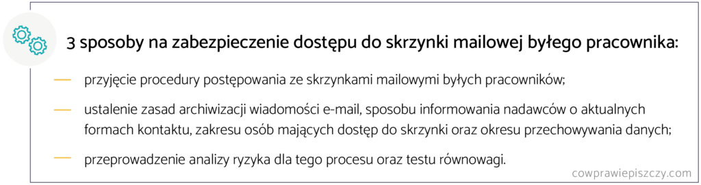 Sposoby na to, jak zabezpieczyć dostęp do skrzynki mailowej byłego pracownika wskazujemy na grafice.
