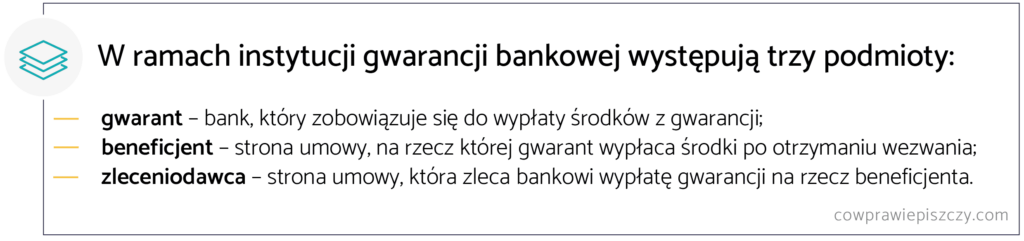 Natomiast bezwarunkowość gwarancji oznacza, że bank zobowiązuje się do wypłaty środków na rzecz beneficjenta bez względu na jakiekolwiek spory, roszczenia czy okoliczności związane z wykonaniem umowy przez zleceniodawcę.