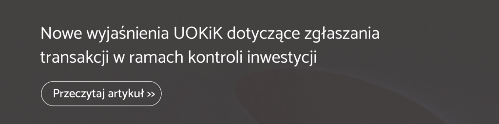 Na początku maja 2024 r. Prezes UOKiK zaktualizował wytyczne dotyczące zgłoszenia zamiaru przeprowadzenia inwestycji, która podlega kontroli. Wytyczne zawierają podstawowe informacje dotyczące przebiegu takiego postępowania oraz praktyczne wskazówki, które pozwolą sprawnie przejść przez nie zgłaszającym.