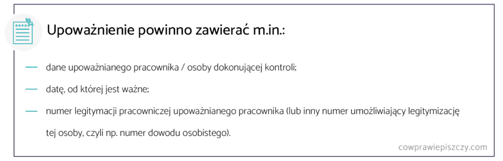 Najważniejsze elementy upoważnienia do kontroli pracownika na L4 prezentujemy na grafice poniżej.