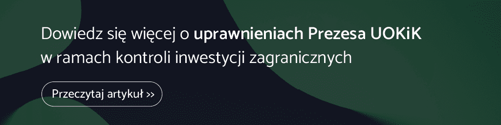 Od 2020 roku Prezes UOKiK ma uprawienia kontrolne, które pozwalają mu sprzeciwić się wybranym inwestycjom zagrażającym interesom Polski i Unii Europejskiej. Jest to konsekwencja wprowadzenia regulacji na szczeblu unijnym[1].