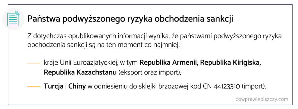 - wywożą towary objęte sankcjami UE, nałożonymi w związku z agresją Rosji na Ukrainę, do państw, co do których istnieje ryzyko, że biorą udział w obchodzeniu sankcji,