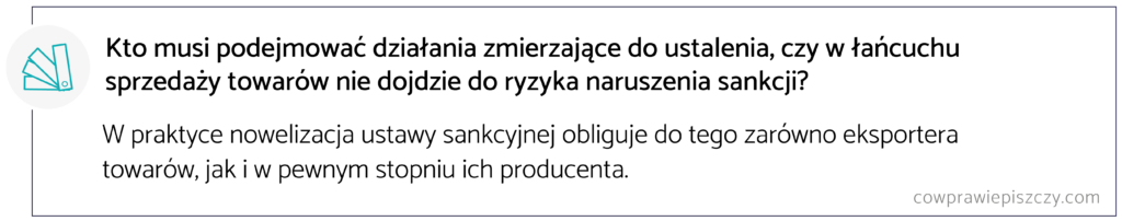 Intencją ustawodawcy jest więc „przyłączenie” przedsiębiorców do analizy ryzyka obchodzenia sankcji, a więc zobligowanie ich do podjęcia dodatkowych działań i weryfikacji, czy dostawa towaru do końcowego odbiorcy nie spowoduje naruszenia sankcji.