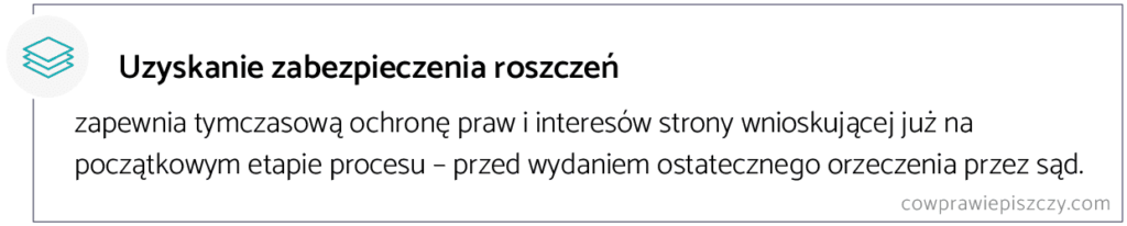 Po tę instytucję sięga się, gdy istnieje ryzyko, że do czasu wydania i uprawomocnienia wyroku okoliczności sprawy mogą ulec zmianie (np. przeciwnik procesowy ukryje do tego czasu majątek, wystąpią kolejne naruszenia naszych praw czy dalsze pogłębianie szkody).