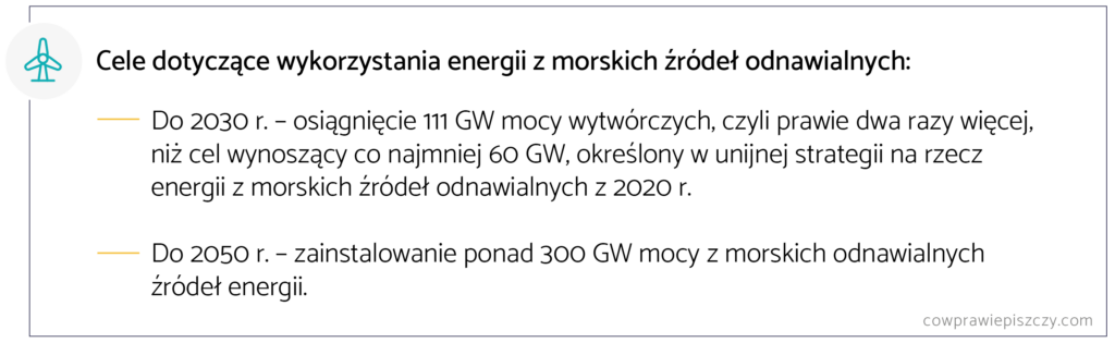 Na początku 2024 r. państwa UE uzgodniły nowe, długoterminowe cele dotyczące wykorzystania energii z morskich źródeł odnawialnych.