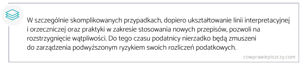 Trudno także jednoznacznie ocenić, jakie urządzenia obejmuje definicja urządzeń technicznych, stanowiących urządzenie budowlane i tym samym opodatkowanych jak budowla, ponieważ ma ona charakter katalogu otwartego. W nowych przepisach nie doprecyzowano też, czy za urządzenie techniczne są uznawane obiekty wewnątrz, czy na zewnątrz budynków. Konsekwencją takiego brzmienia przepisów może być opodatkowanie wszelkiego typu urządzeń u przedsiębiorców.