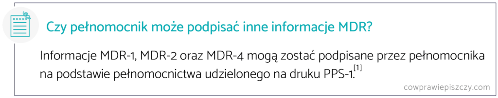 Czy informacja o zastosowaniu schematu (MDR-3) może być podpisana przez pełnomocnika?
