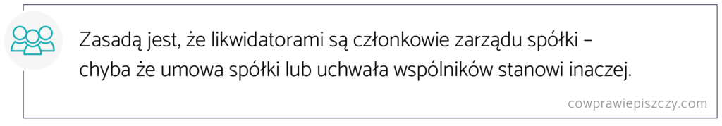 - umowa spółki określa inny sposób postępowania, np. wskazuje likwidatora imiennie bądź opisuje alternatywny sposób jego wyboru;