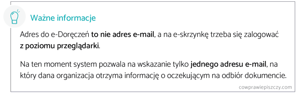 Powiązanie obsługi skrzynki z obowiązkami danego pracownika jest tym istotniejsze, że w e-skrzynkach obowiązuje fikcja doręczeń. Po upływie 14 dni pismo, które zostało przesłane na e-skrzynkę naszej organizacji, zostaje uznane za skutecznie doręczone.