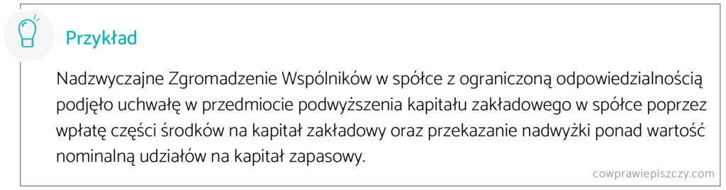 Podwyższenie kapitału zakładowego i przekazanie nadwyżki na kapitał zapasowy (agio)