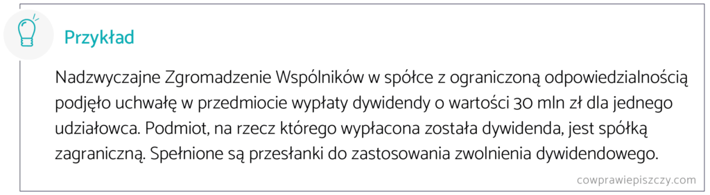 Wypłata dywidendy o wartości 30 mln zł objętej tzw. zwolnieniem dywidendowym