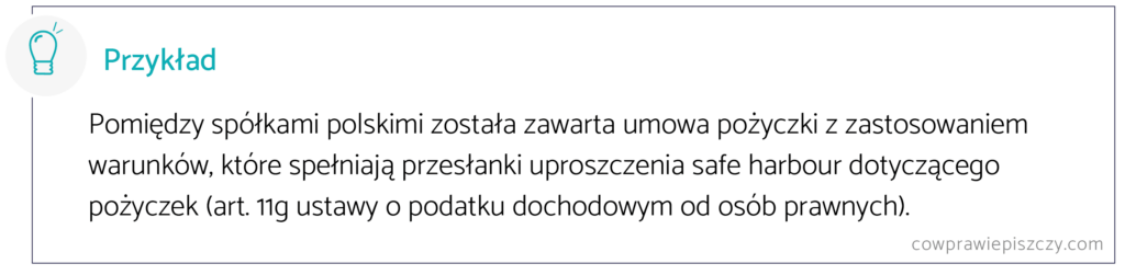 Zawarcie umowy pożyczki z podmiotem powiązanym z zastosowaniem uproszczenia w zakresie cen transferowych „safe harbour”