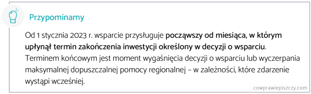 Potwierdza się więc, że przesunięty moment rozpoczęcia korzystania ze zwolnienia stanowi termin graniczny, do którego podatnicy działają na zasadach ogólnych pod kątem podatkowym. Tego rodzaju potwierdzenie może być istotne na wypadek chęci skorzystania z innych instrumentów podatkowych przez podatników posiadających decyzje o wsparciu.