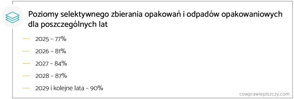 - osiągać wynikające z ustawy poziomy selektywnego zbierania opakowań i odpadów opakowaniowych (grafika niżej),