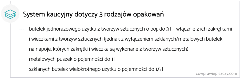 - pobieraniu kaucji na każdym etapie dystrybucji produktu (a nie dopiero od użytkownika końcowego),