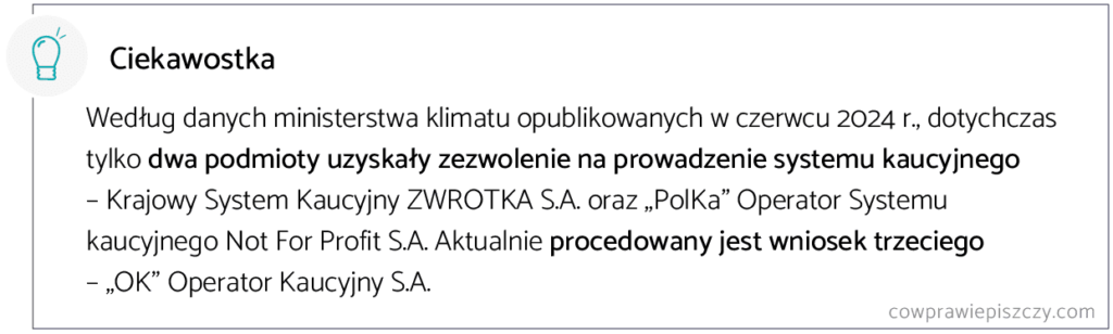Każdy podmiot reprezentujący może stworzyć własny system kaucyjny. W praktyce możliwe jest więc występowanie kilku, a nawet kilkunastu takich systemów w Polsce (w których udział będą brać różni producenci napojów i inni przedsiębiorcy).